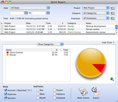 If you have a small business and are looking for a simple time tracking tool to track the time you spend on specific projects and to generate associated invoices, here is a product that I found few years ago and that is easy to use: OfficeTime.